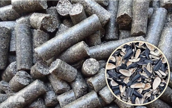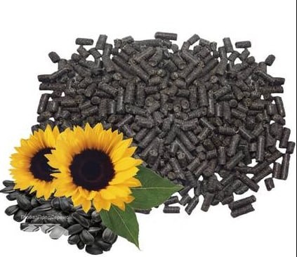 as biofuels for boilers, stoves, greenhouses (5-12% residual oil and wax, which makes husk a very energy-intensive raw material, pellets have a heat storage capacity of ≈ 5 kWh/kg, which is higher than that of wood pellets (4 - 4.4 kWh/kg), straw pellets (3.8 - 4.2 kWh/kg) and is comparable to coal fuel.