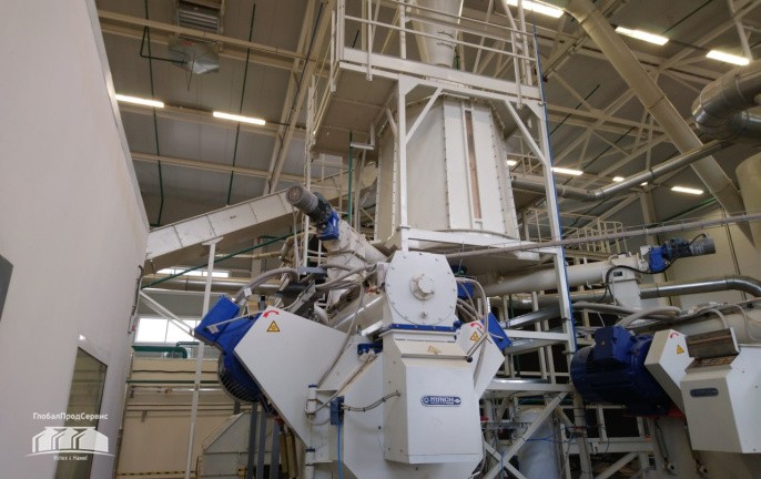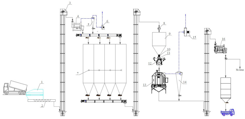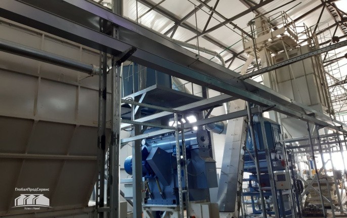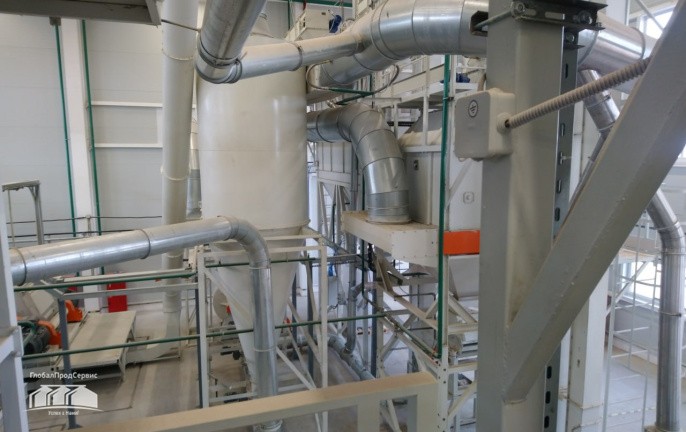 Отсепарированные отруби, при помощи винтового конвейера, распределяются по силосам (7) для оперативного хранения и дальнейшего гранулирования.
