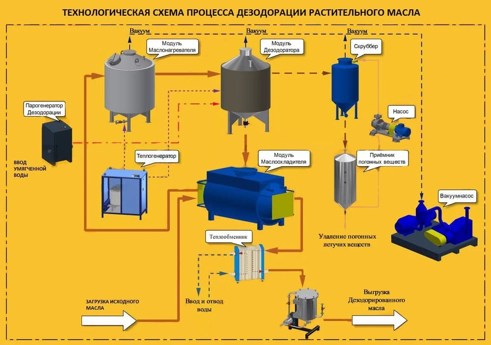 Устройство и принцип работы линии дезодорации растительных масел